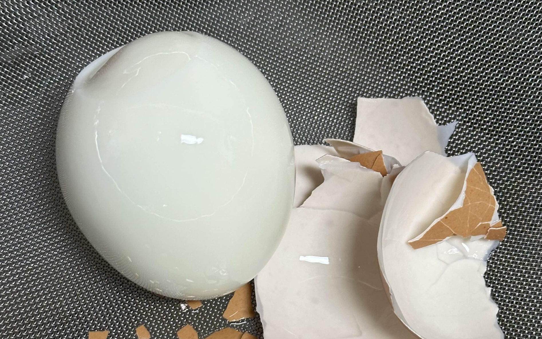 흰자가 조금도 묻어나지 않는 완벽한 껍질 벗기기에 성공했다.